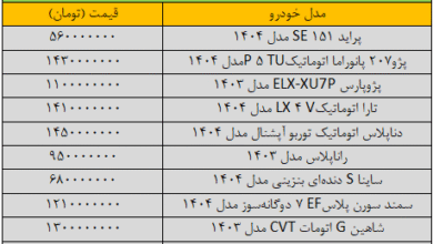 سمند و پژوپارس میلیاردی قیمت خوردند/ آخرین قیمت پژو، شاهین، کوییک، ساینا و دنا + جدول